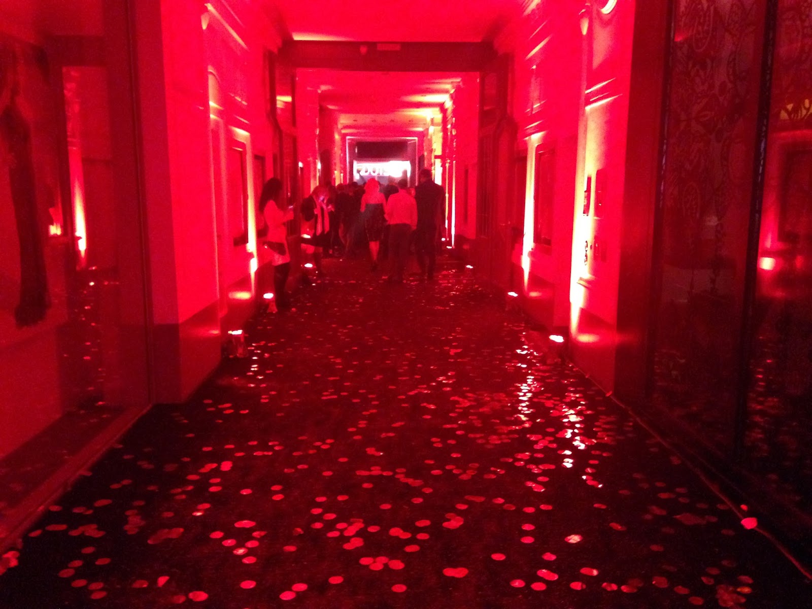 Nach einem schillernden Auftritt durch .. landeten die Gäste zwar in einem weniger hübschen, mit schwarzem Stoff verkleideten Durchgangsschlauch, einmal abgebogen, befanden sie sich aber auch schon im glamourösen Lokal des Unternehmers.