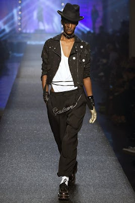 Jean Paul Gaultier’s inspiration for his Summer 2013 collection were some 80’s rock legends: Doubles of Michael Jackson, Madonna, Boy George, David Bowie, Blondie, Grace Jones and Annie Lennox joined the show in Paris.