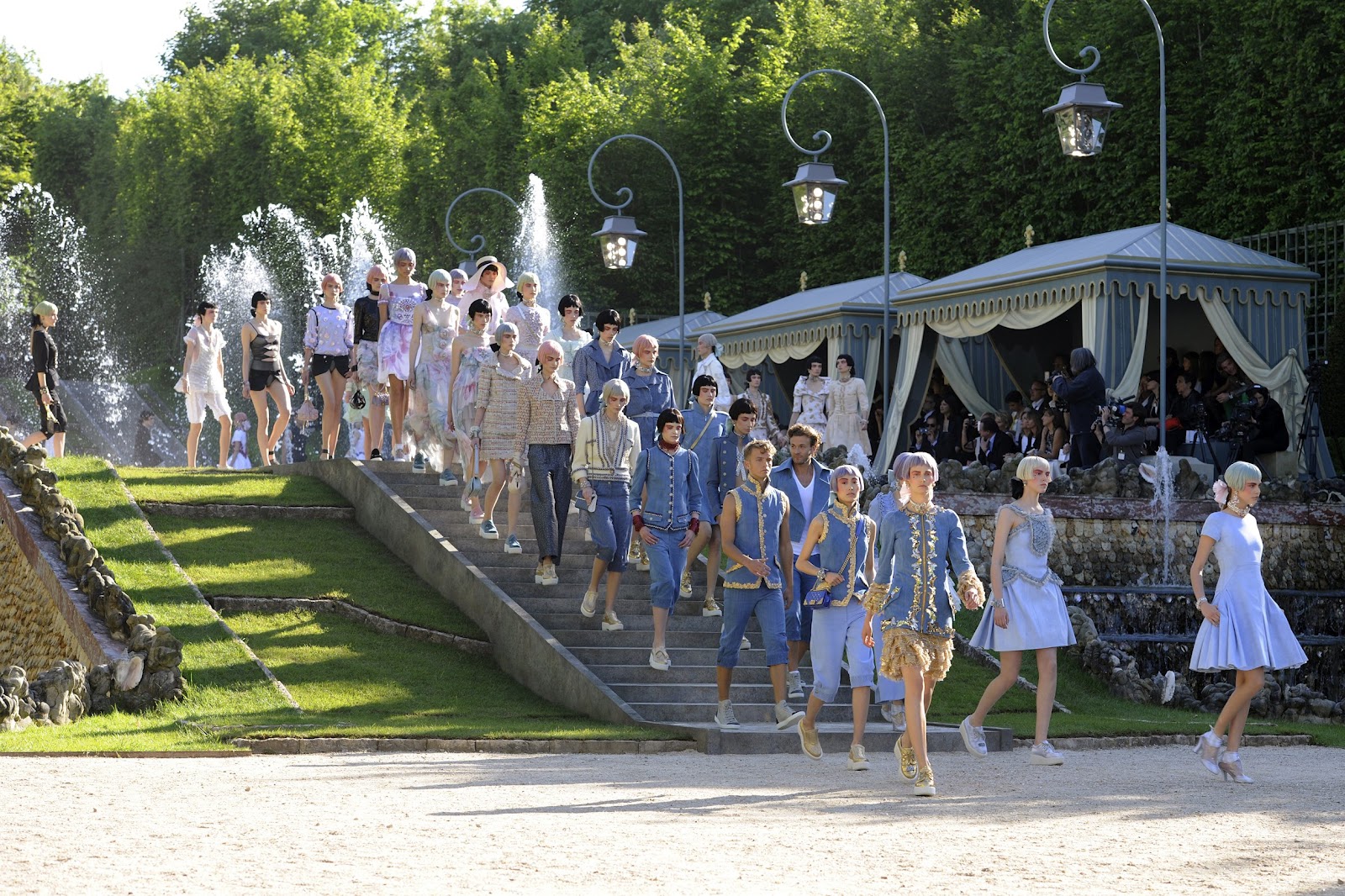 Chanel’s Cruise collection 2012/13 is inspired by the eighteenth century – in combination with modern, punk elements. Perfectly: The setting of the fashion show was Verseilles – a pupolar place at the moment (I just want to remember on Dior’s last film).