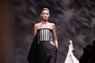 For the new Christian Dior Haute Couture collection Raf Simons didn’t forgot the „New Look“ of course, but he used new elements like a lot of transparency, cut-outs and also a little bit of bondage: