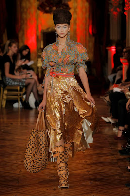 Westwood’s summer 2013 collection for her Gold Label is inspired by a little book on beetles, artist Diego Velázquez and the prints on a box of Chinese tea – which could be Indian, Asian, Russian, African. A global mixture: