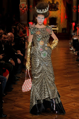 Westwood’s summer 2013 collection for her Gold Label is inspired by a little book on beetles, artist Diego Velázquez and the prints on a box of Chinese tea – which could be Indian, Asian, Russian, African. A global mixture: