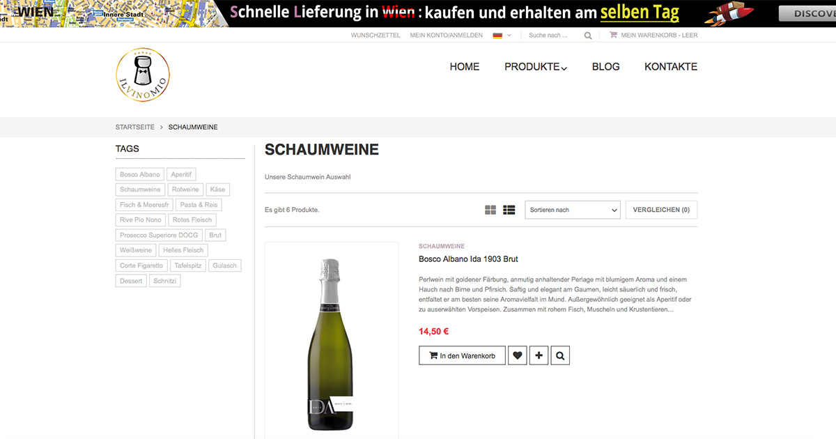 Damit aber nicht genug, die Weinlieferung soll keine Tage dauern, sondern noch am selben Tag beim Weinliebhaber eintreffen – und das auf einen Klick: Einfach auf www.ilvinomio.com gehen, den Weinfavoriten bestellen und noch bevor das Dinner fertig ist, oder Sie nach dem Schlüssel suchen, steht der Wein vor der Türe.