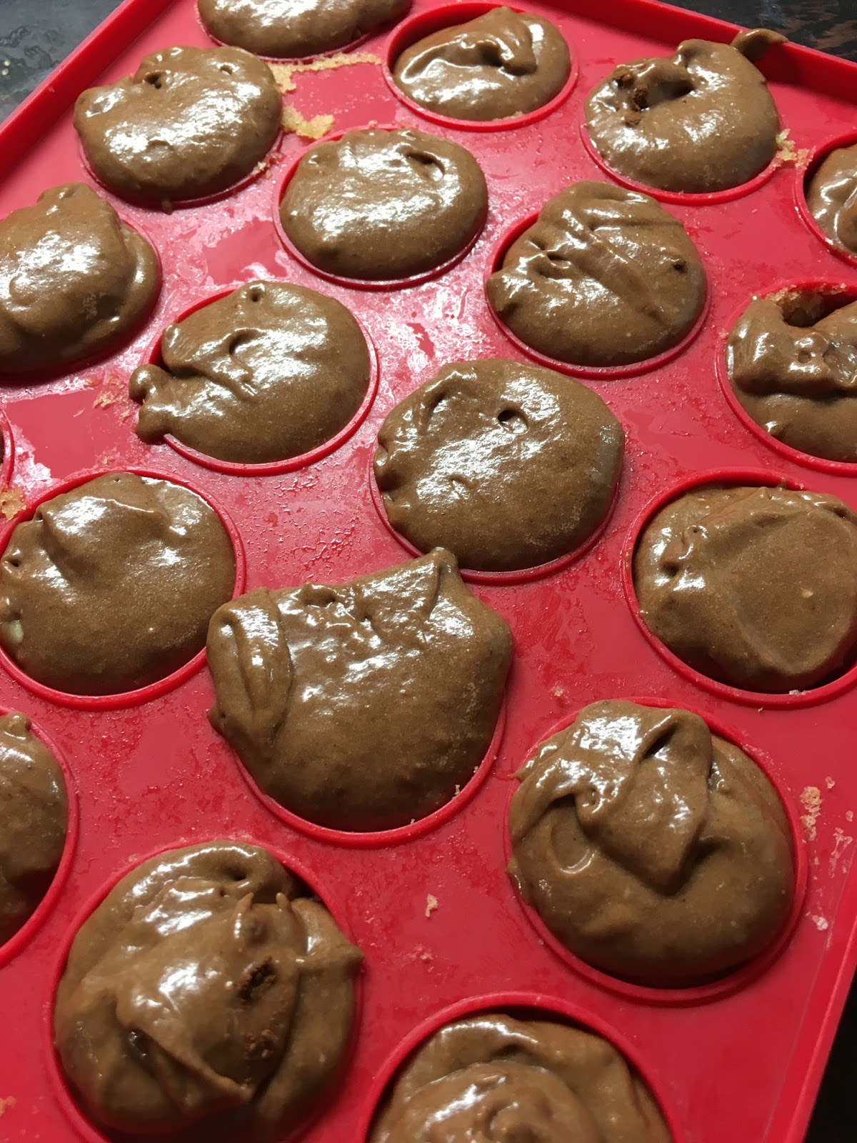 Zuerst habe ich Kakao-Biskuit-Kugeln in Cake-Pop-Formen gebacken: