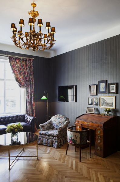 Live in the 50ies: The Austrian fashion maker Lena Hoschek designed a suite at the Hotel Altstadt Vienna with striped wallpapers, flowered chairs and curtains, crystal chandelier and a velvet bedroom. It costs between 179 and 339 Euro by night.