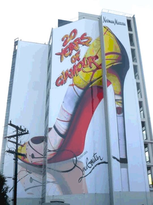 The department store Neiman Marcus and street artist Galo Make Canote celebrate Christian Louboutin’s 20th anniversary with a giant red-soled heel mural on Sunset Boulevard – it’s just amazing …
