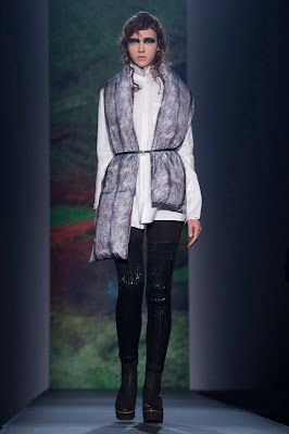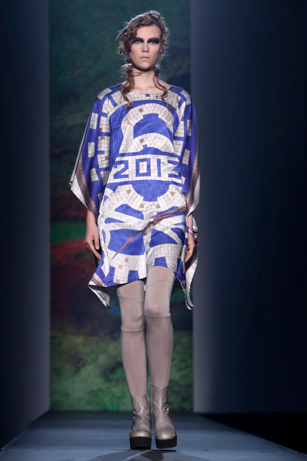 MM6 Maison Martin Margiela’s collection for winter 2013 is inspired by 1952 Helsinki Winter Olympic Games: layered look, metal glimmer, knitwear and some spot of colour.