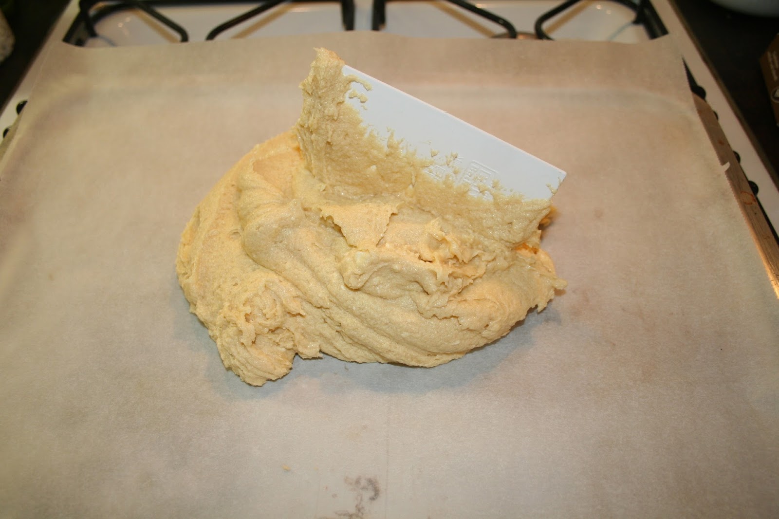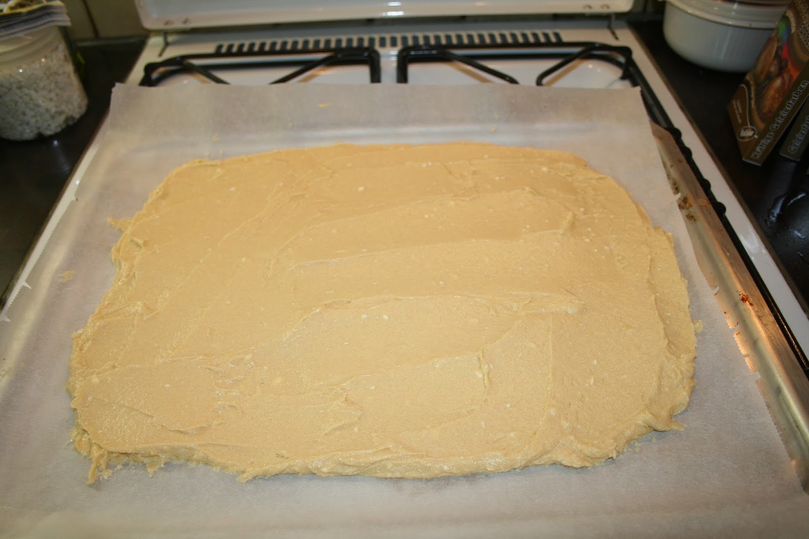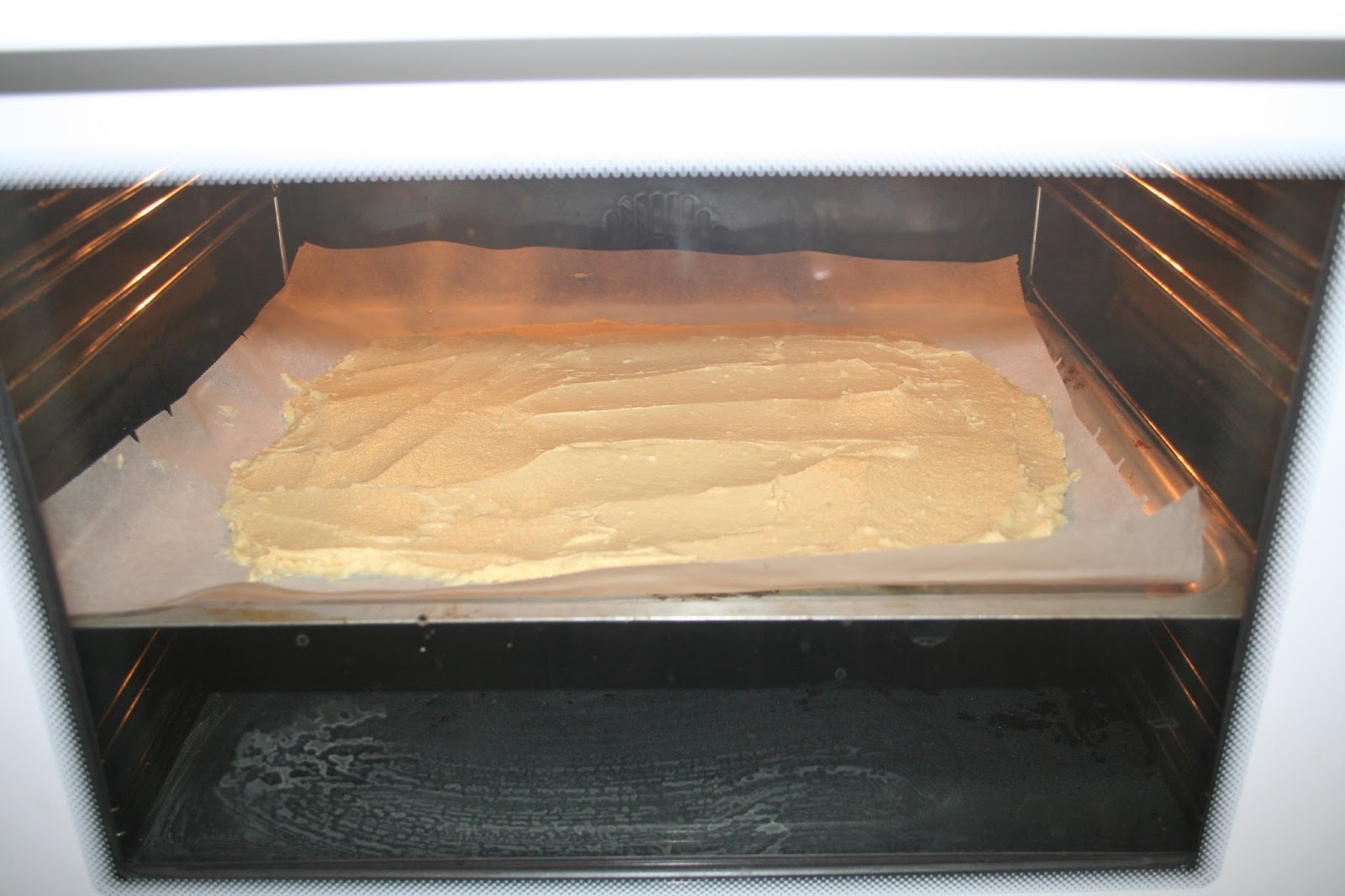 Die Masse auf ein Backblech mit Backpapier streichen.