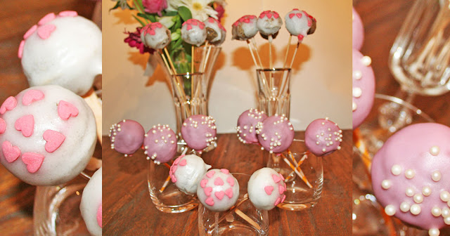 Ich habe mich an Cake Pops gewagt, natürlich in Rosa und mit Herzen 😉