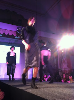Für „monochrome complexity“ ging Michael Stibor von mittelalterlichen Folterszenen aus und schuf daraus japanische Kleidungsformen. Gelungene Kreationen, die durchaus zwischen den Kollektionen großer Designer Platz hätten: