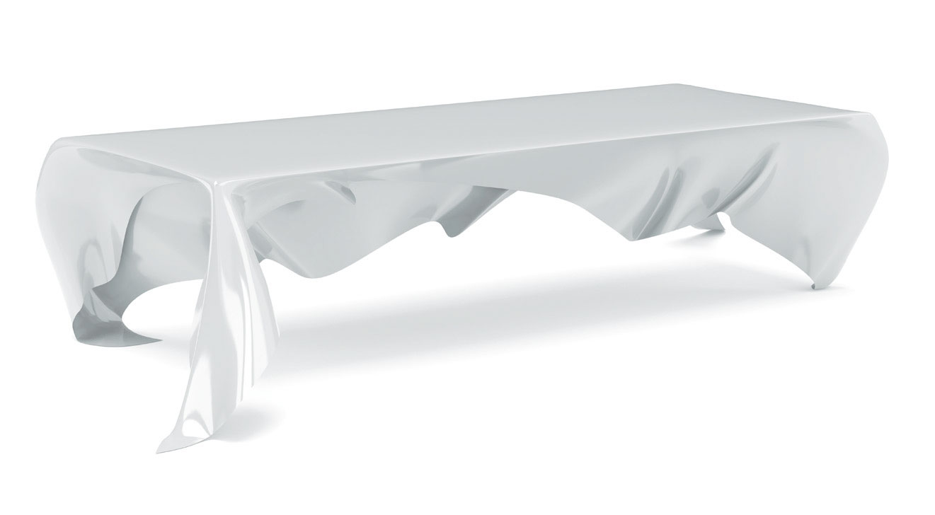 There are nine of this fibreglass dining tables designed by Graft – a big cloth which is set in motion – and one of the three metre long tables is standing in Brad Pitt’s house.