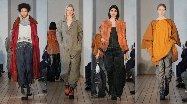 Überzeugen konnte am Ende aber die 24-jährige Britin mit ihrer perfekten Balance zwischen groben Stoffen wie Raw Denim und leichten Stoffen wie Seide. Auffällig an ihren vier präsentierten Kreationen ist auch die Oversized-Silhouette, die sämtliche Altersstufen ineinander verschwimmen lässt.