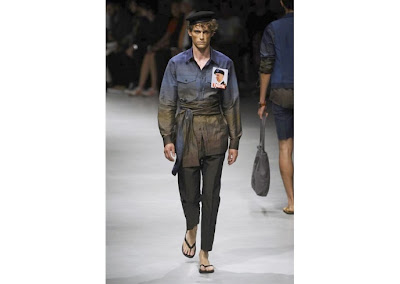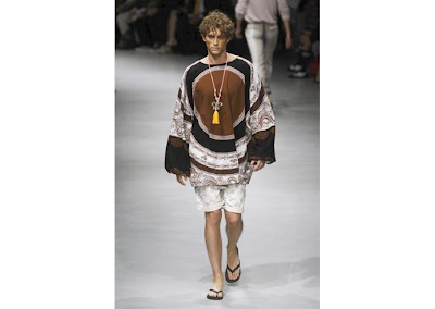 The rest of the collection was inspired by the Eastern style: Kaftan shirts, baggy pants, summer suits, geometric prints, toe sandals and flip flops.